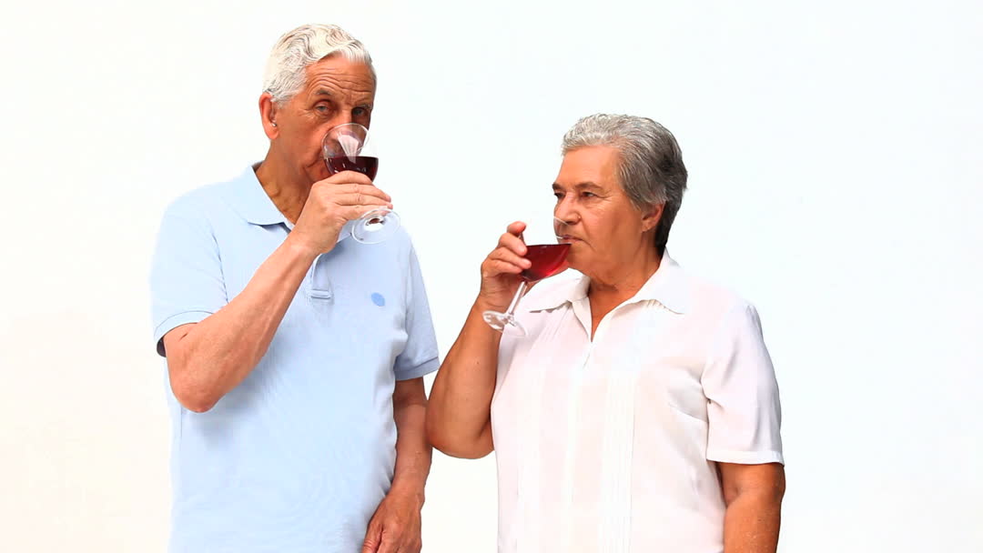 - Senior Couple Enjoying Red Wine in Casual Attire