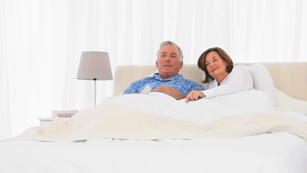 - Senior Couple Relaxing in Bed Watching Television