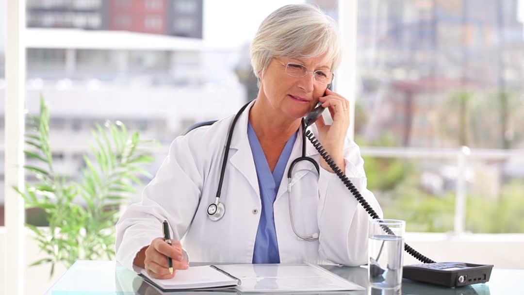 - Senior Female Doctor Answering Phone Call and Taking Notes