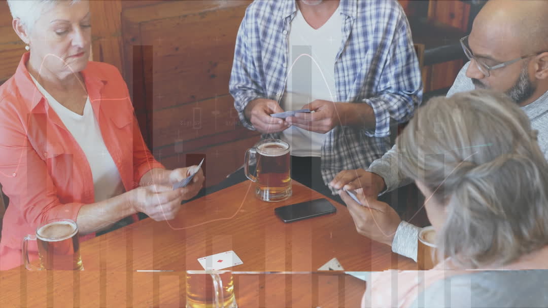 - Senior Friends Enjoying Card Game with Digital Interface Overlay