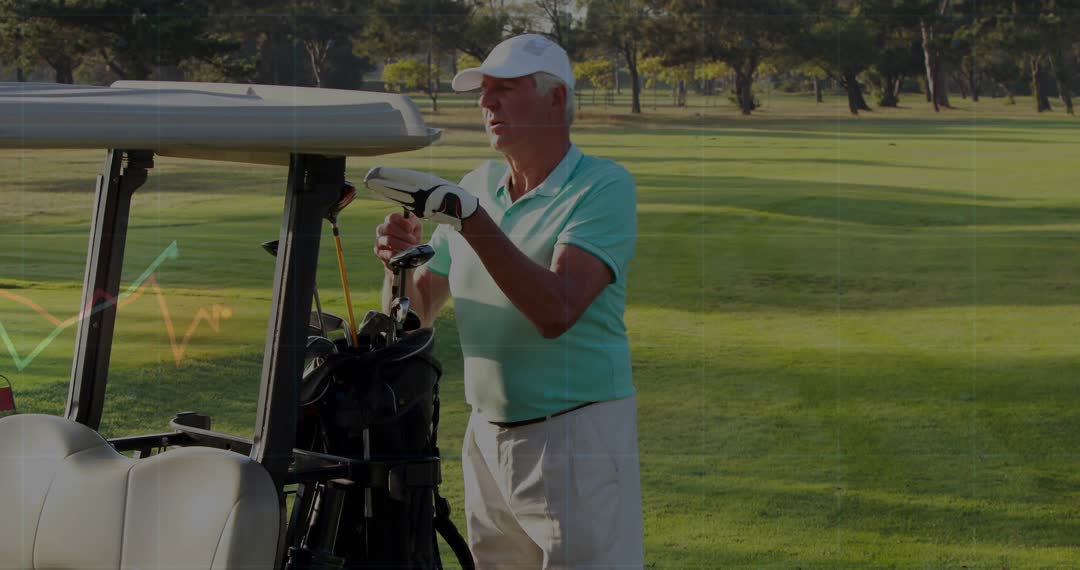 - Senior Golfer Selecting Club from Bag at Golf Cart on Sunny Fairway for Practice and Play
