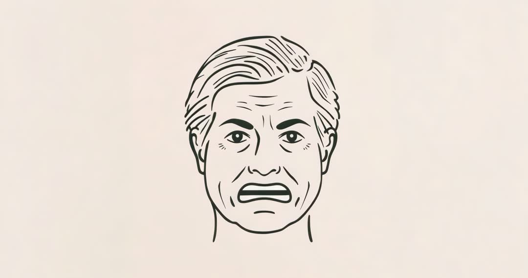 AI Generated Image. This video frame depicts a line drawing transformation of a senior male's face, evolving from neutral to a fearful expression. On a simple beige backdrop, the minimalistic approach highlights emotional transitions, providing insights into emotions and expressions. Ideal for illustrating psychological concepts, art projects focusing on emotions, or minimalism-themed design exhibitions.