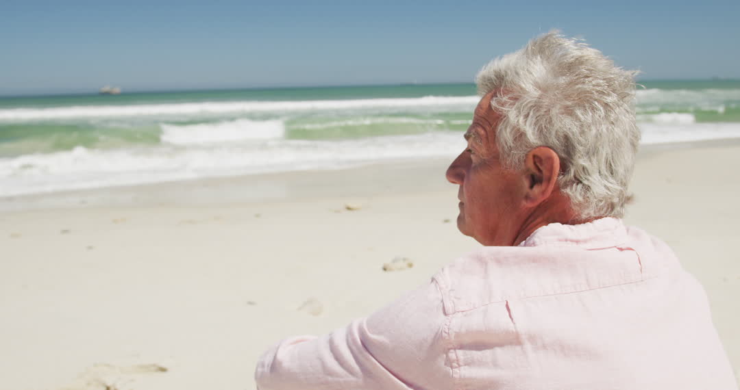 - Senior Man Enjoying Peaceful Beach View in Tranquil Setting