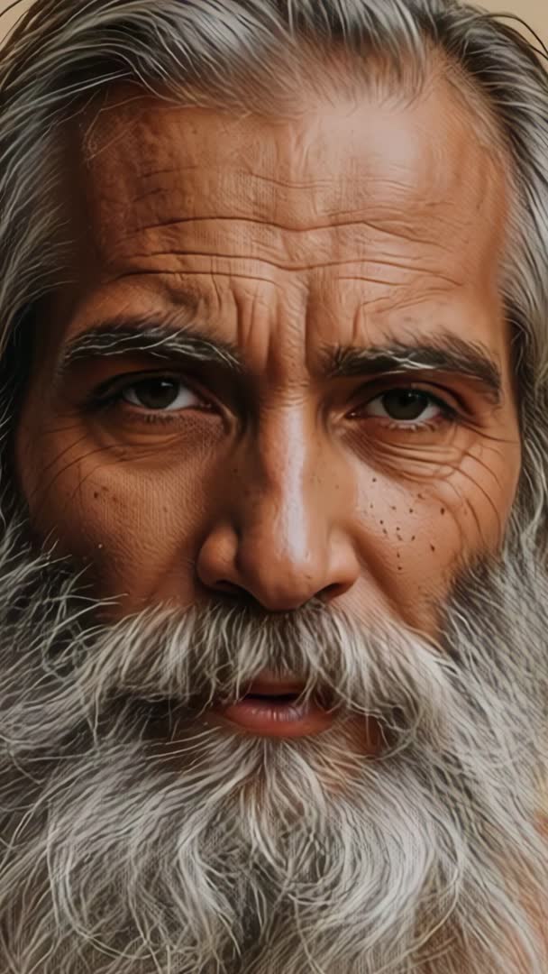 AI Generated Image. Vertical video featuring extreme close-up of senior man raising eyelids and holding steady gaze, conveying introspection, wisdom, and calm. Fine facial detail highlighting gray beard, deep wrinkles, freckles, and expressive eyes, suiting projects exploring aging, mindfulness, portrait storytelling, and documentary moments. Perfect for use in social media vertical ads, mobile storytelling, eldercare campaigns, mental health resources, documentary openers, and website hero banners. Suggesting edit ideas: pairing with soft instrumental music, applying slow cross-dissolve, using subtle color grade for cinematic warmth, and adding voiceover narration about memory, reflection, or life experience.