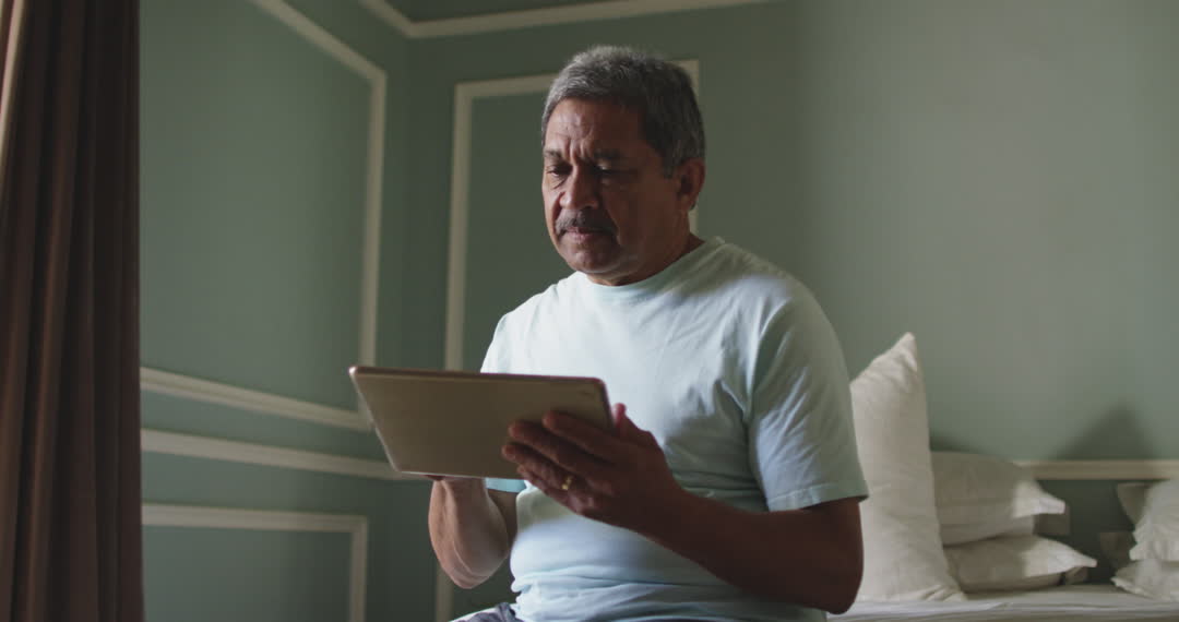 <a target="_blank" href=https://pikwizard.com/video/senior-man-using-tablet-in-bedroom-for-self-retirement/f2a06c8454ce0c59cd766e072e26c296/>PikWizard</a>