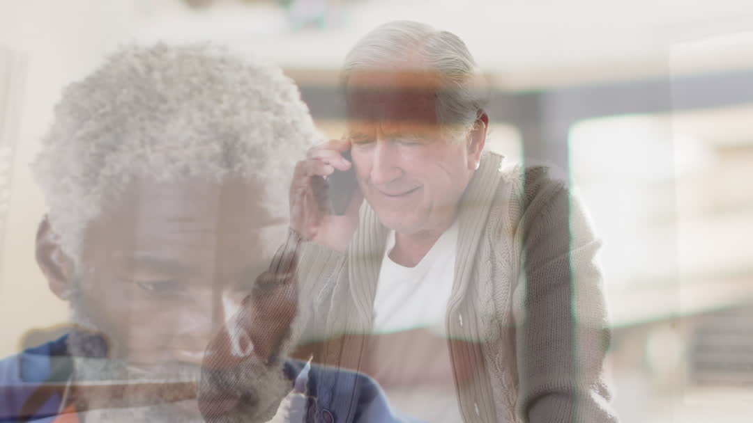 Senior Men Communicating on Phone, Layered Images Concept Video