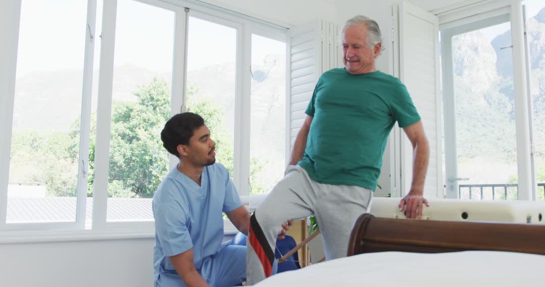 - Senior Physiotherapy Session with Care Professional in Modern Clinic