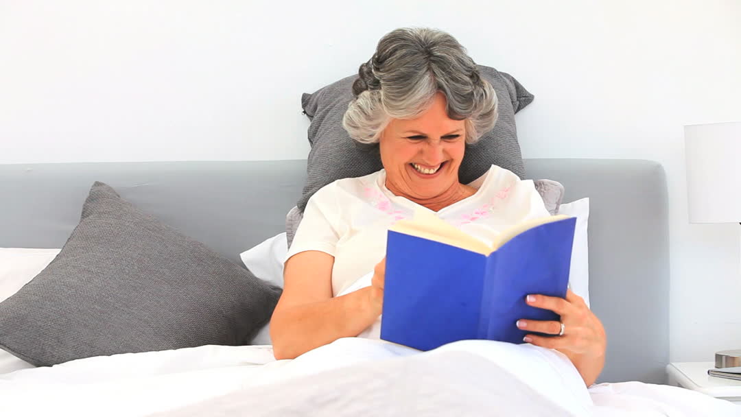 - Senior Woman Enjoying Book Reading on Bed