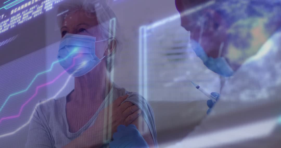 - Senior Woman Receiving Vaccine Injection Enhanced by Digital Analytics