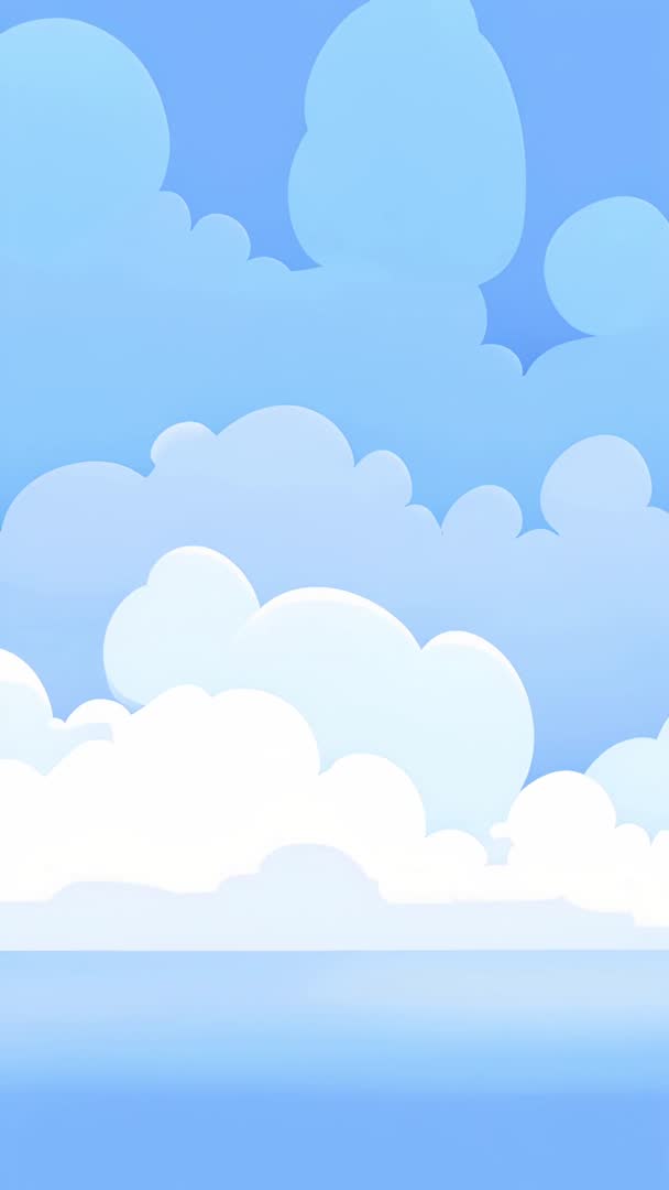 This illustration represents a peaceful blue sky with fluffy clouds, embodying a tranquil and calm atmosphere. It is suitable for use as a calming background, in nature-related themes, or for projects related to relaxation and mindfulness. It can also enhance materials aimed at promoting outdoor activities, weather forecasts, or serene natural settings.