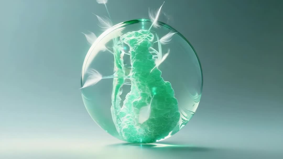 Serene Rotating Glass Sphere with Green Abstract Art Video