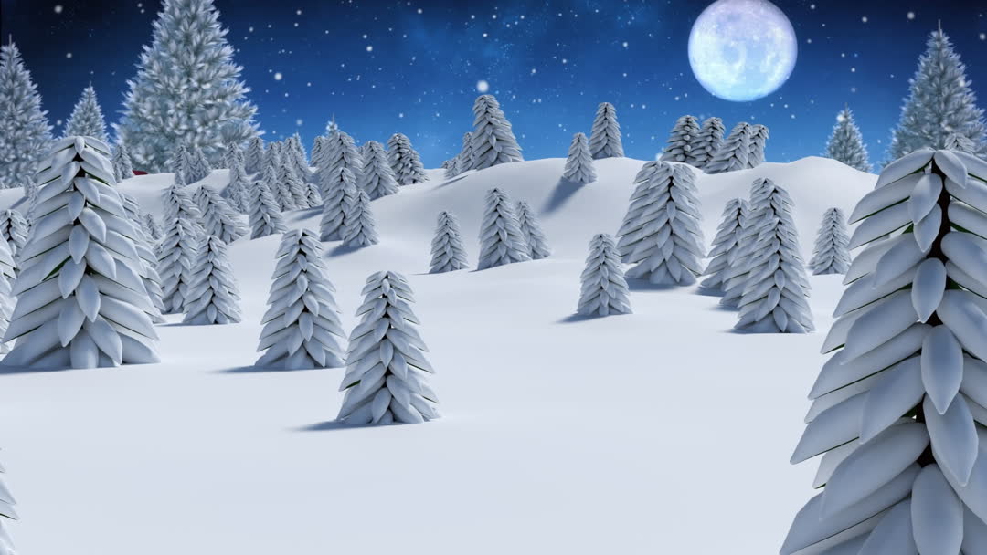 Beautiful scene depicting a tranquil winter landscape under a full moon, showcasing snow-covered trees. Perfect for holiday and winter-themed greeting cards, festive invitations, and seasonal decor inspiration. Creates an enchanting and calming atmosphere ideal for holiday promotions or meditation visuals.