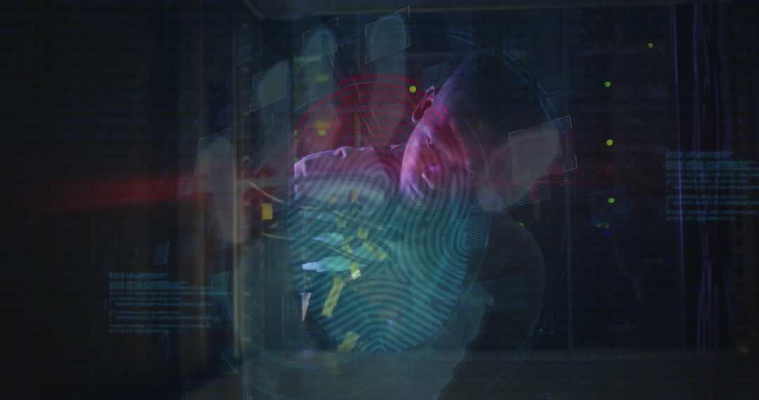 - Server Room Technician with Digital Cloud Fingerprint Interface