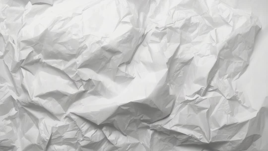 AI Generated Video. Shifting camera revealing crumpled white paper surface with deep folds, sharp highlights, and soft shadows. Closeup footage capturing fine grain and subtle creases for tactile, organic feel. Studio lighting sculpting folds and creating strong monochrome contrast for graphic, minimal look. Useful for motion backgrounds, title plates, product packaging mockups, texture overlays, displacement maps, and abstract visual motifs. Serving well as seamless loop for web banners, social media reels, broadcast idents, and animation projects. Editing suggestions: applying multiply or overlay blend modes, desaturating or adding color wash, boosting contrast and clarity to emphasize depth, using footage as displacement map for 3D texturing or as mask for creative transitions. Ideal for design projects needing neutral yet textured background, sustainable packaging concepts, craft or stationery presentations, and modern minimalist campaigns.