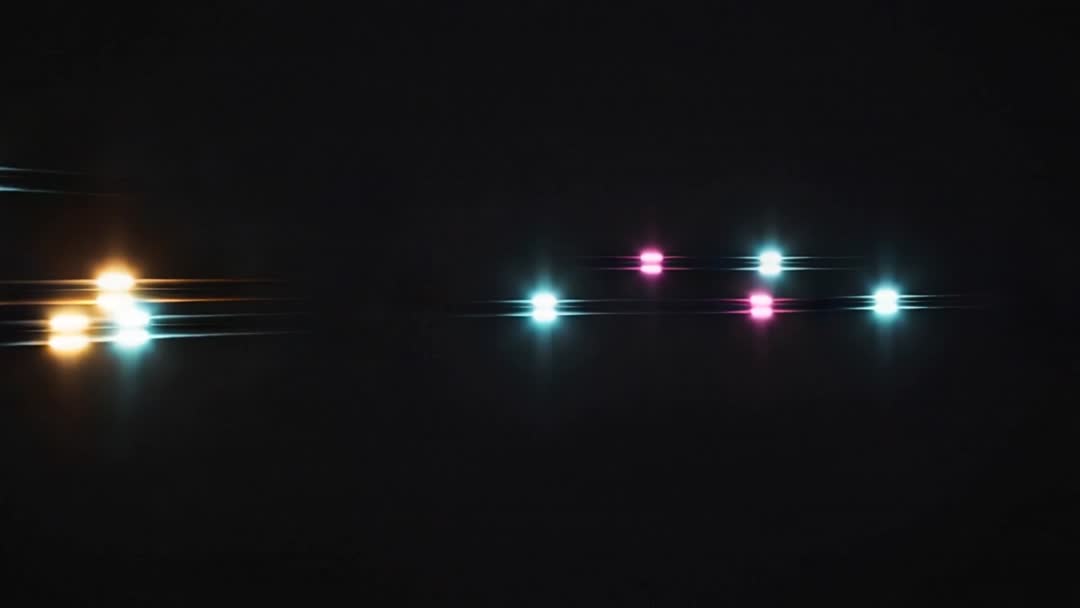Shifting Cyan Magenta Yellow Light Streaks Moving Across Dark Nightscape Video