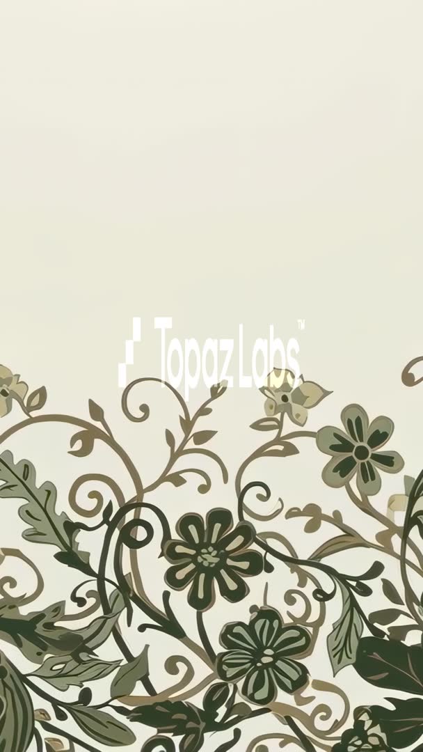 AI Generated Video. Featuring shifting botanical scrollwork across lower portion of frame with ample beige negative space and subtle Topaz Labs watermark flickering during playback. Creating vintage decorative motif with swirling vines, stylized flowers, and muted green-brown palette for calm, organic look. Making vertical framing and gentle motion ideal for mobile stories, social media reels, app splash screens, intro sequences, and portrait-first ad creatives. Suggesting use for title overlays, product presentation backdrops, seasonal or wedding promos, branding reveals, and lifestyle campaign accents. Recommending color grade adjustments, licensed watermark removal, loop extension for continuous playback, and adding soft music or ambient sound to enhance mood.