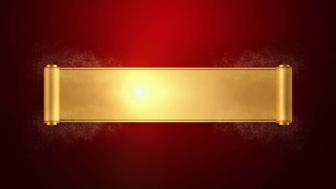AI Generated Video. Featuring shimmering gold scroll banner unfurling across deep red background, showing floating dust particles and center glowing light flare. Ornate rolled ends and subtle glitter texture creating premium, cinematic look. Wide horizontal frame offering clean center panel for text, logo, countdown or lower third graphics. Serving as title reveal, luxury brand intro, festive greeting, award presentation, product showcase or event promotion. Working well in video intros, social media ads, website hero headers, invitation animations, promotional reels and livestream overlays. Recommending adding bold serif or script typography in center, applying subtle parallax or slow zoom for motion, looping seamlessly for ambient background and adjusting color grade to match brand palette. Perfect for holiday campaigns such as Lunar New Year, Christmas, wedding announcements, corporate events and awards ceremonies.