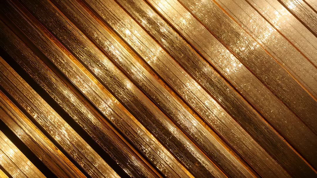 - Shimmering Gold Wooden Planks with Reflective Elegance