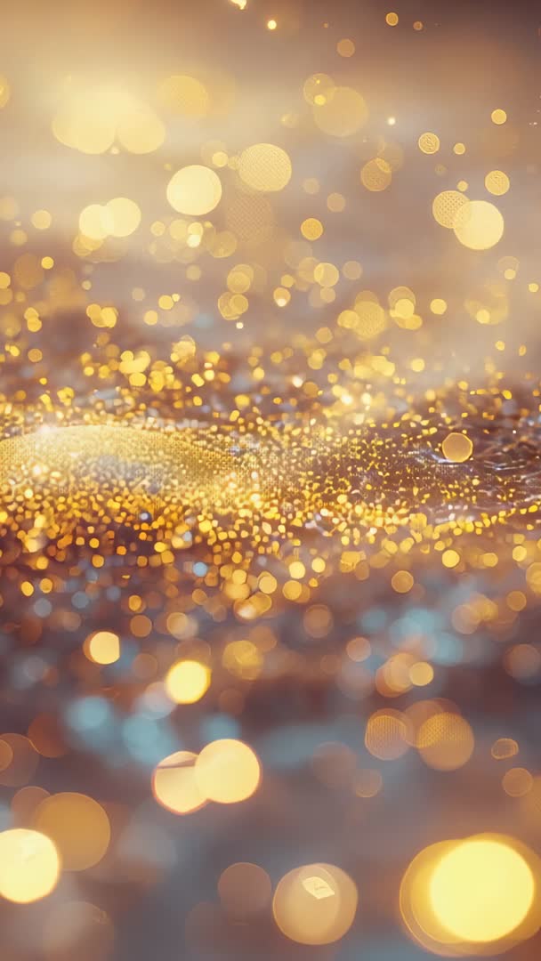 - Shimmering Golden Glitter Waves Macro Vertical Video Warm Bokeh and Sparkling Particles