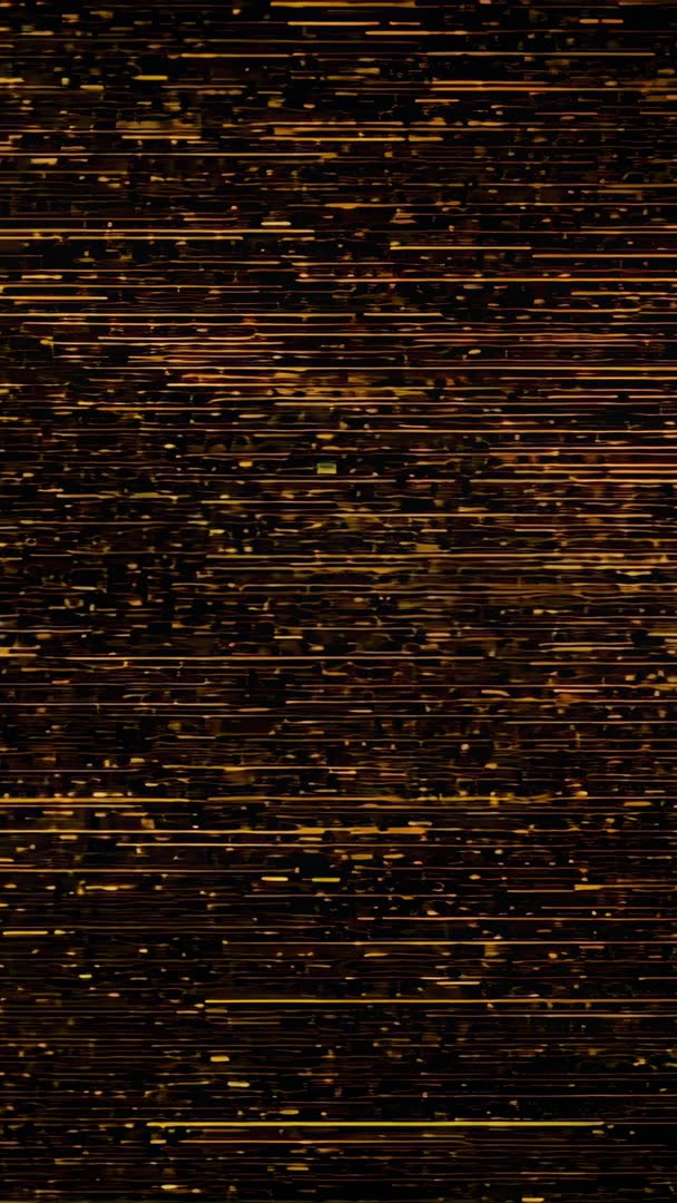 AI Generated Video. Showing thin golden streaks sliding horizontally across dark vertical frame, punctuating composition with scattered glowing dots. Creating elegant shimmering texture and cinematic mood with warm amber tones and high contrast. Offering loop-friendly motion for continuous playback and flexible speed control for slow-motion or time-ramp effects. Working well as background for title intros, logo reveals, social media stories, music visualizers, event projections, and luxury product promos. Allowing easy layering with text or graphics using blend modes and opacity adjustments. Delivering attention-grabbing vertical format optimized for smartphone-first platforms and short-form video campaigns.