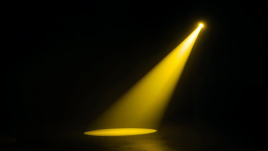 - Shining spotlight casting golden beam and circular stage glow, empty theater video loop
