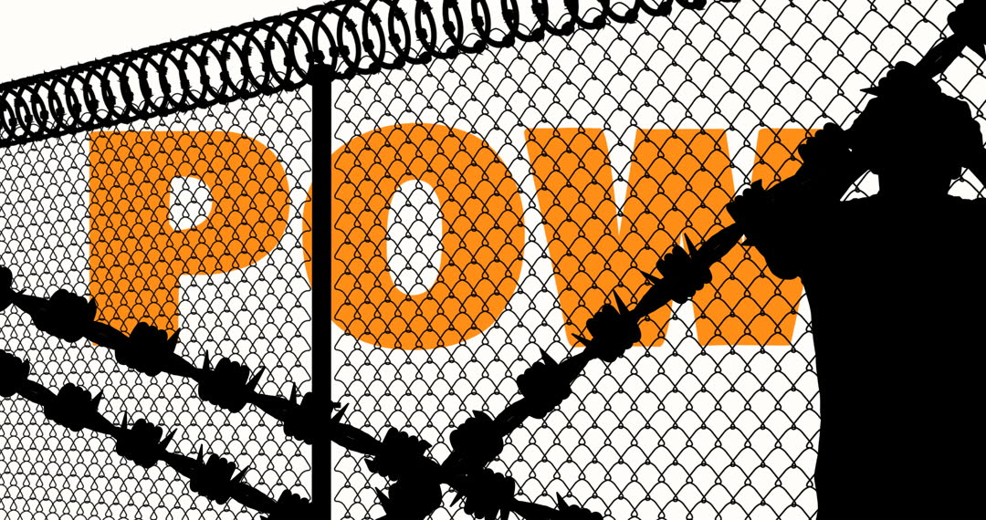 The video illustrates themes of imprisonment and conflict, featuring a striking juxtaposition of a silhouetted figure against barbed wire and the bold POW letters in the background. Useful for articles, campaigns, and presentations focused on war, prisoners of war, human rights, and global conflicts.