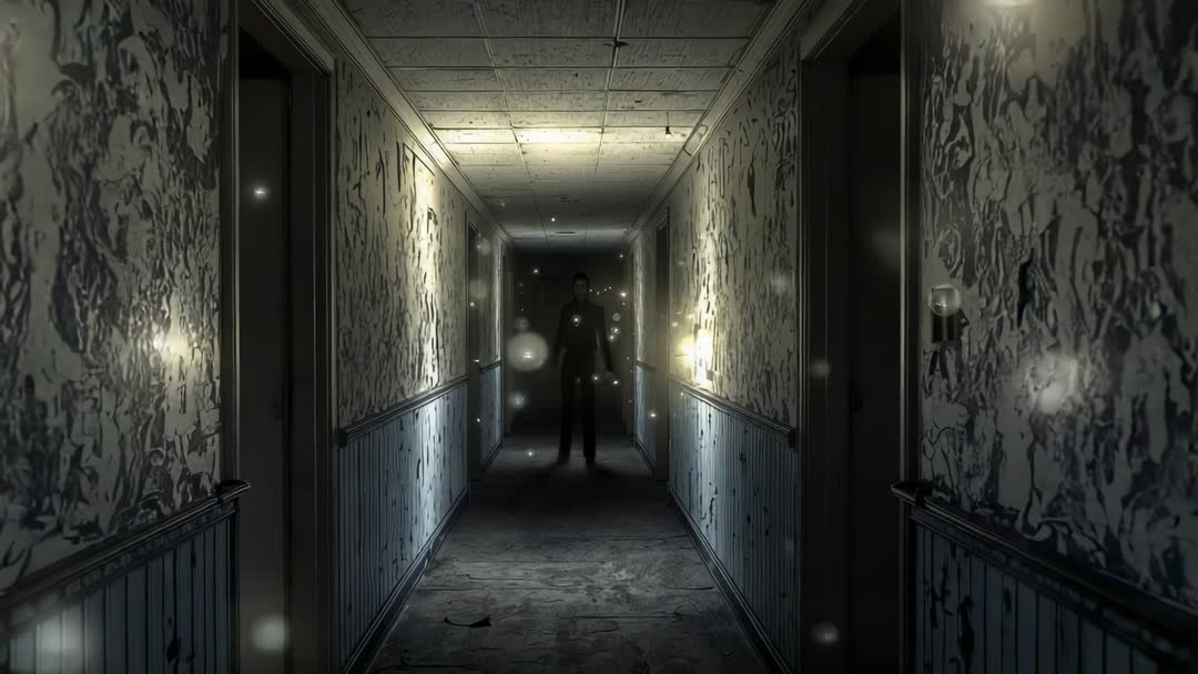 Silhouette in Haunted Corridor Illuminated by Orbs Video