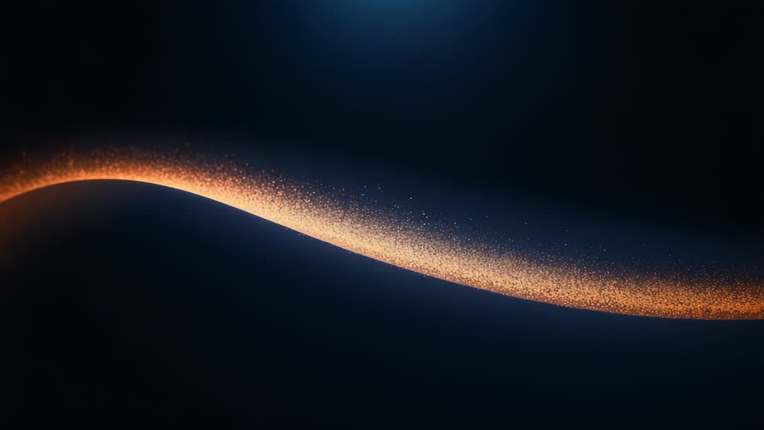 - Sinuous Golden Particle Ribbon Flowing Across Deep Navy Gradient Looping Motion Background