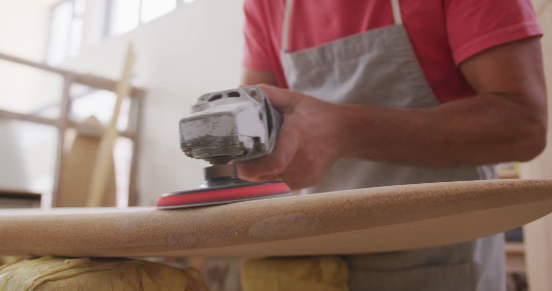 <a target="_blank" href=https://pikwizard.com/video/skilled-craftsman-shaping-wooden-surfboard-with-sander/17b1f96f78de03263809508854c07bf1/>PikWizard</a>
