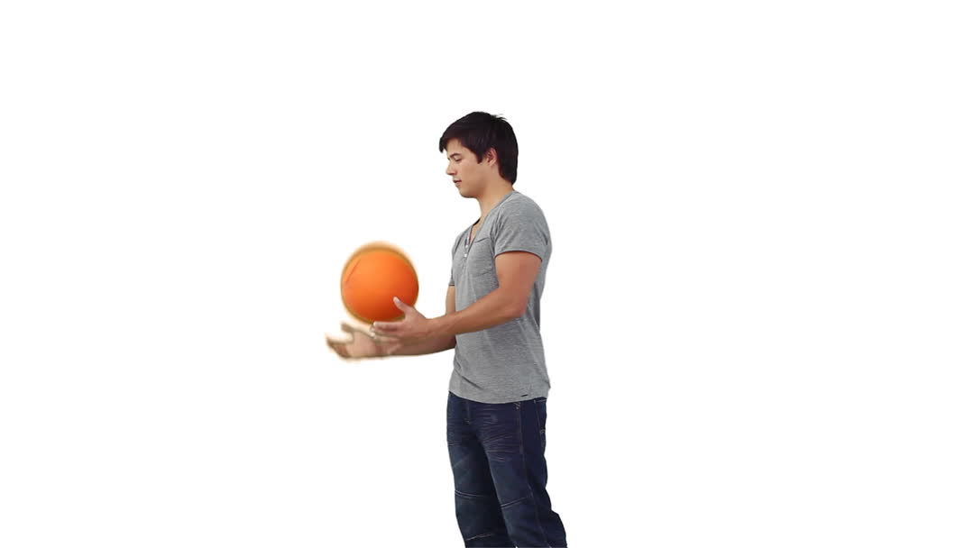 - Skilled Man Spinning Basketball on Finger Isolated on White