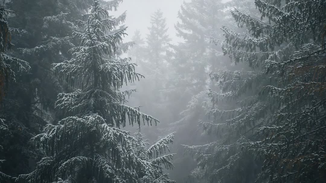 AI Generated Video. Sliding forward through mid canopy, revealing snow-dusted spruce trees shrouded in soft fog. Evoking moody, atmospheric tone with cool desaturated colors and layered depth. Offering slow-moving cinematic establishing shot ideal for nature films, winter travel promos, meditation apps, climate storytelling, and background loops for social media headers. Pairing well with ambient music, soft piano, or low cinematic drones to enhance sense of solitude and mystery. Serving as cinematic opener, transition plate, title backplate, or layered element for color grading and visual effects. Working well for slow-paced storytelling, seasonal campaigns, or environmental awareness pieces. Providing options for gentle looping, speed ramping, and subtle stabilization for smooth playback. Footage marked AI-generated — consider disclosure for editorial or creative uses.