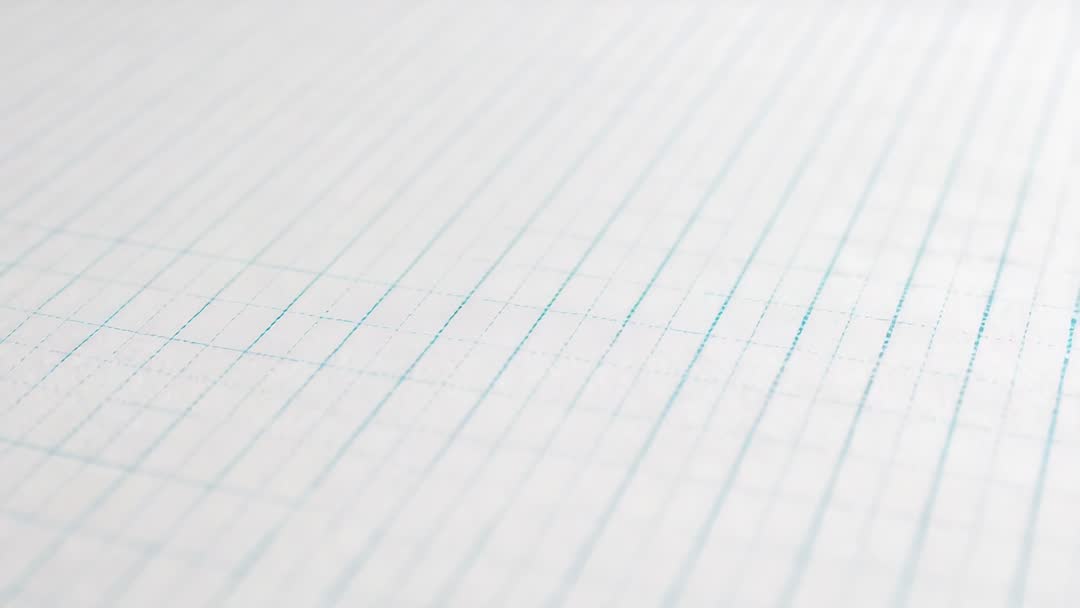 - Sliding close-up of quad-ruled notebook paper revealing blue grid texture and diagonal lines