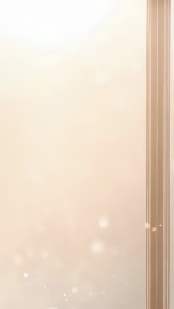 AI Generated Video. Vertical 9:16 video showing sliding curtain panel along right trim with warm bokeh glow and soft ambient light. Left negative space providing ideal area for text and logo placement. Neutral beige palette creating calm, elegant mood for interior design, architecture, lifestyle, and wellness projects. Soft fabric motion and subtle light particles adding ethereal, cinematic feel. Slow sliding motion fitting opener, transition, product reveal, or mobile ad. Suggested use including overlaying bold title on left, adding subtle soundtrack, and looping clip for background. Recommended edits including gentle color grading, slight vignette, contrast boosting for text legibility, and exporting in vertical 1080x1920 or 4K vertical for mobile-first platforms.