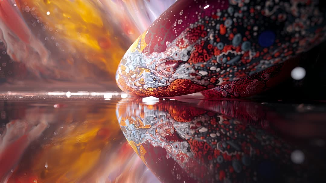 AI Generated Image. Showcasing close-up of two marbled orbs sliding and reflecting on glossy surface. Composition balancing symmetry and motion while iridescent bokeh and liquid textures creating cinematic depth. Warm amber and deep red tones adding dramatic contrast and rich detail. Suiting backgrounds in design, motion graphics, website hero banners, album covers, advertising campaigns, product packaging mockups, editorial layouts, social media posts, and fine art prints. Pairing with minimalist typography or bold headlines while adjusting color grading for brand coherence. Suggesting cropping for horizontal or vertical layouts, using as looping video background for presentations, extracting still frames for print collateral. Supporting futuristic, experimental, and luxury themes with AI generated aesthetic.