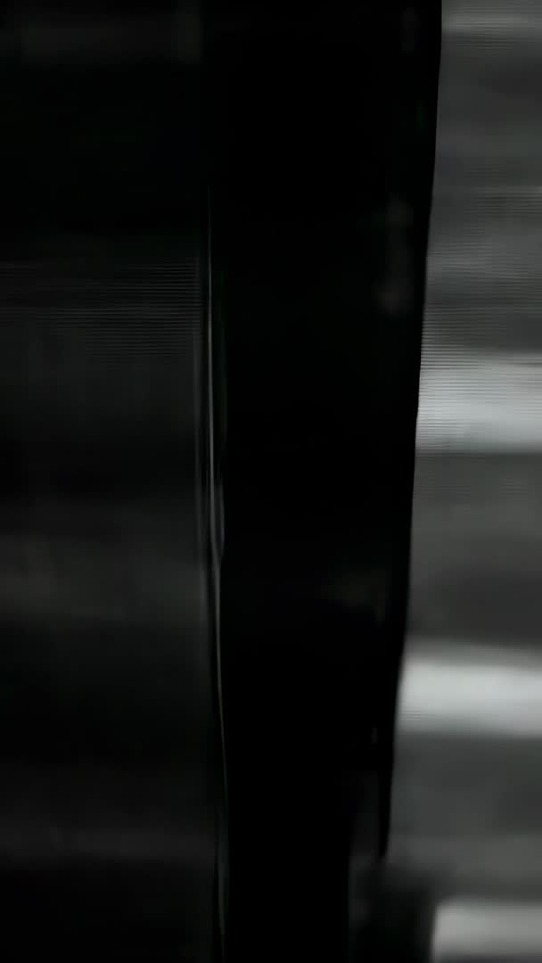 AI Generated Image. Vertical video showing sliding venetian blind drifting across window while camera moving to reveal horizontal slats. Clip featuring strong contrast, subtle banding and motion blur for moody, cinematic look. Frame composing with tall, narrow aspect ratio for mobile and social vertical formats. Use for background loop, transition element, b-roll in architecture or interior design promos, product reveal, title sequence, or atmospheric commercial. Color palette staying monochrome with deep blacks and silver highlights, making it ideal for high-contrast designs and minimalist branding. Providing editors with option to loop seamlessly or slow down for dramatic effect.
