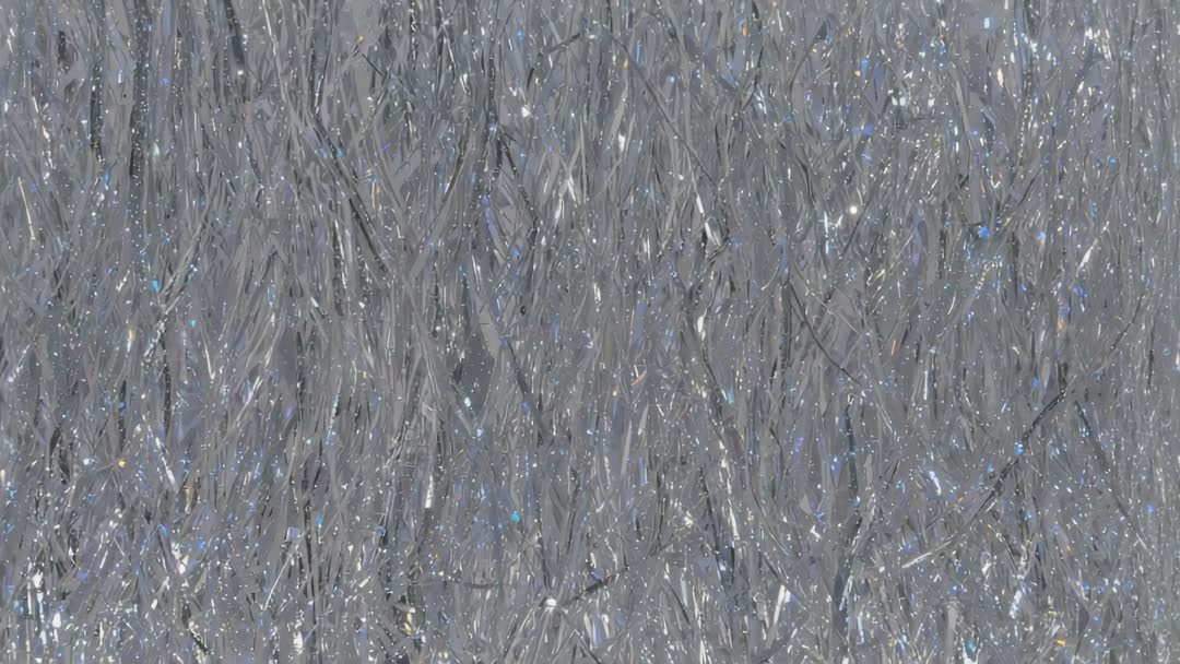 AI Generated Video. Loopable slow-motion close-up showing dense silver tinsel curtain shimmering under studio lights. Foil strands reflecting prismatic highlights and specular flashes, creating dynamic glittering motion and rich metallic texture. Serving as festive background for party and holiday commercials, website hero headers, social media stories, music visuals, and VJ loops. Working well as overlay for product launches, fashion campaigns, event invitations, seasonal greeting animations, and packaging design. Supplied in high resolution with seamless loop options for easy integration and color grading.