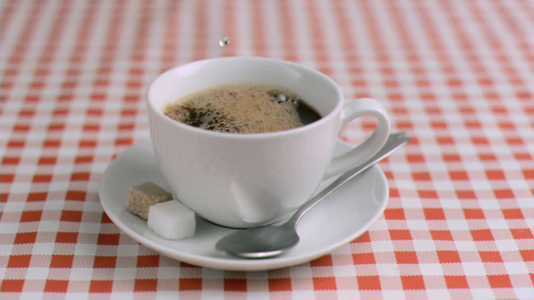 - Slow Motion Drop Falling into Coffee Cup