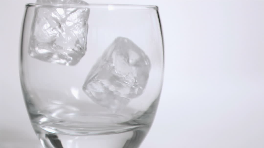 - Slow Motion Drop of Ice Cubes into Clear Tumbler