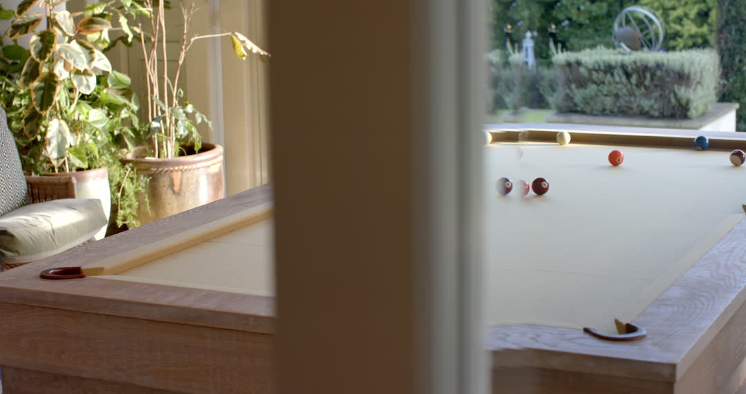 - Slow Motion Pool Game in Sunny Room with Indoor Plants