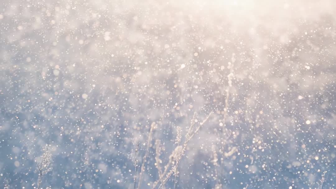 AI Generated Video. Showing slow-motion sunlit snowfall drifting over frost-covered grasses, backlit bokeh creating soft golden highlights. Capturing delicate flurry, soft focus, and subtle motion blur to evoke calm, wintry mood. Color palette blending cool blues with warm sunlight glow, creating versatile backdrop for seasonal projects. Ideal for holiday marketing, social media loops, website hero banners, greeting card animations, meditation or relaxation videos, weather segments, cinematic transitions, and background overlays. Providing negative space at top for text overlay or logo placement while lower frame offers natural foreground texture. Looping friendly footage when trimmed to seamless start and end; slow-motion speed emphasizing floating flakes and gentle sparkles. Compatible with color grading, light leak overlays, and soft particle effects. Licensing suitable for commercial and editorial use in commercials, television, online ads, and nature documentaries.