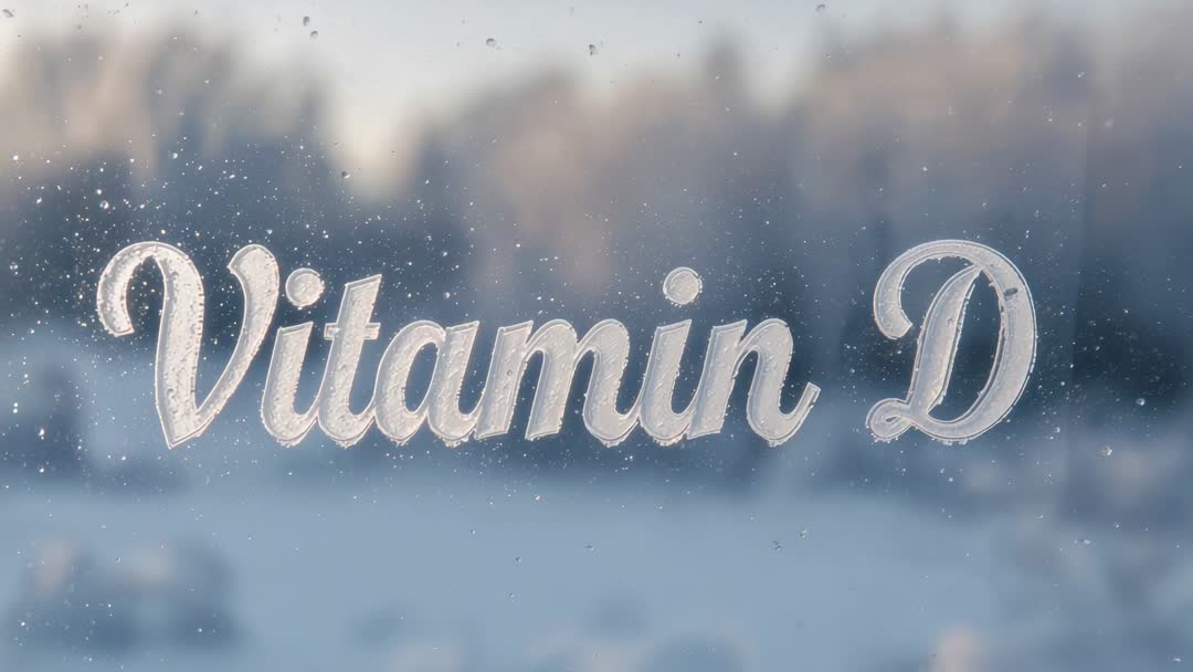 AI Generated Image. Looping slow-motion clip showing frost texture and water droplets sliding down cabin window with 'Vitamin D' script carved into frost. Sunrise light creating warm bokeh and subtle backlight highlights on glass, evoking chilly morning and craving for sunlight. Footage conveying winter wellness theme, sunlight importance for vitamin D, cozy cabin lifestyle, and seasonal advertising mood. Use for health and wellness campaigns, supplement product promos, clinic waiting room displays, seasonal blog headers, social media reels, pharmacy marketing, and educational videos about sunlight and vitamin D deficiency. Frames providing text-safe space for overlays and titles, supporting logo placement, subtitles, or call-to-action graphics.