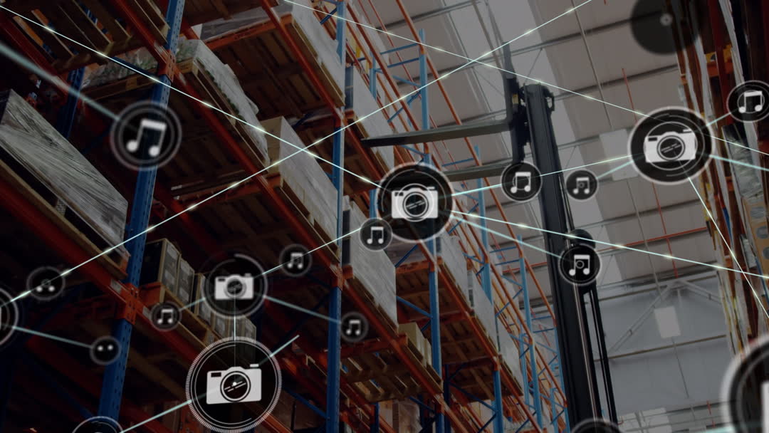 Smart Warehouse with Interactive Icon Network Overlay Video
