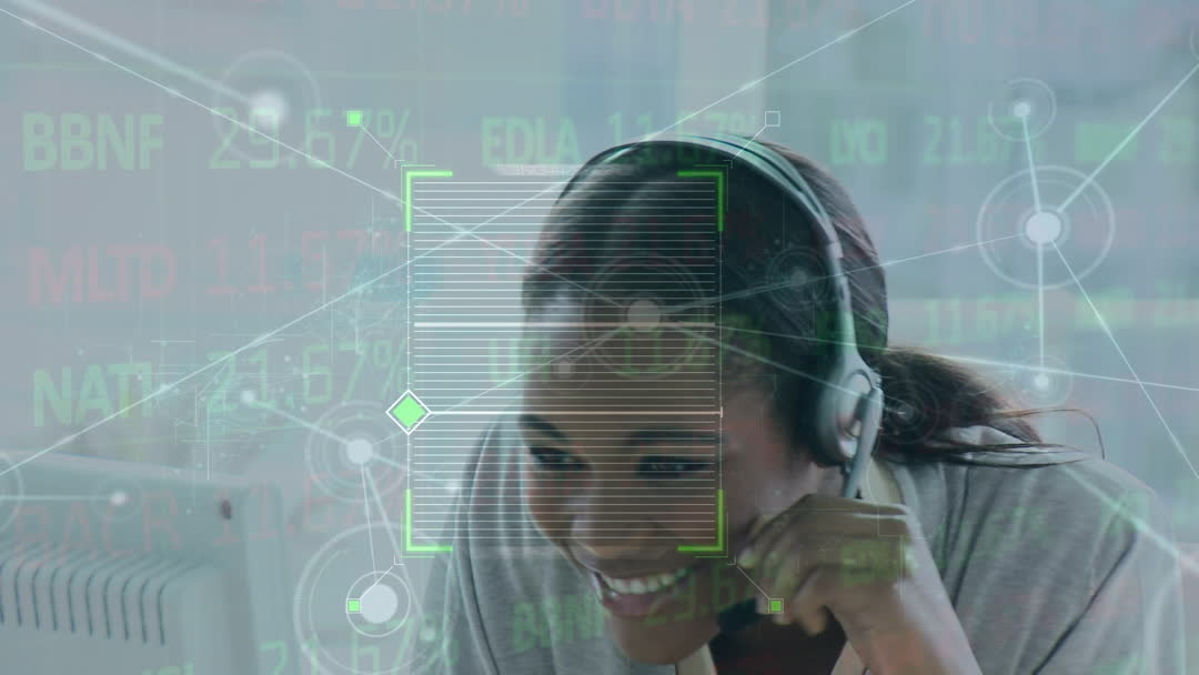 Smiling Customer Support Representative with Data Overlay Video