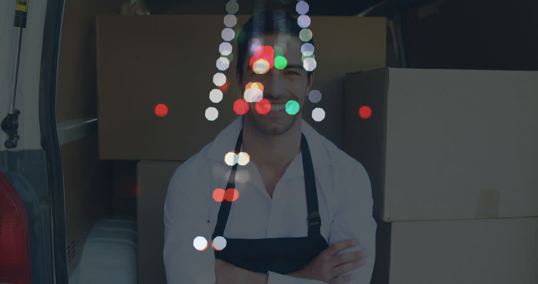 - Smiling Delivery Person with Superimposed Urban Road Lights
