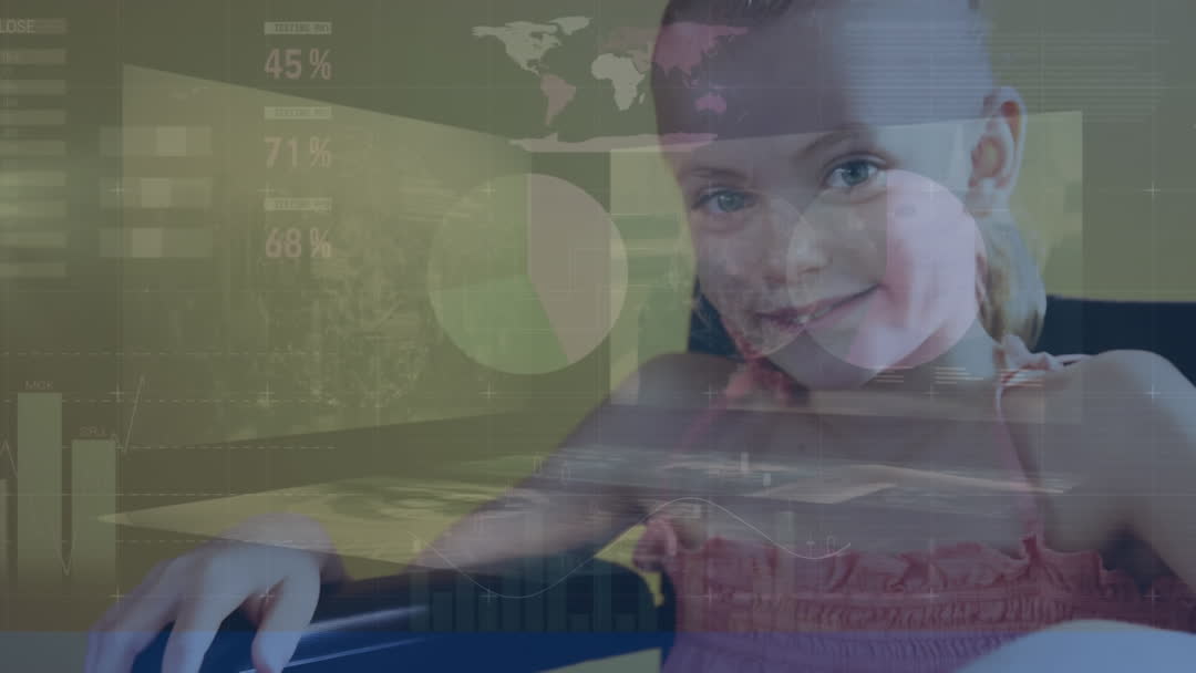 Smiling Disabled Schoolgirl with Digital Interface Overlay Video