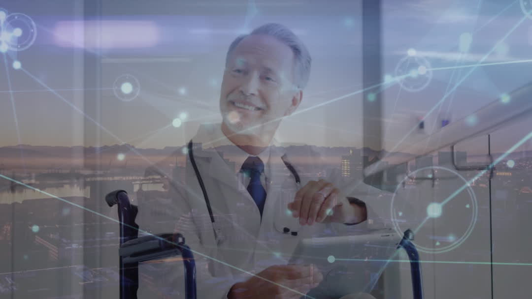 <a target="_blank" href=https://pikwizard.com/video/smiling-male-doctor-with-digital-network-overlay/54e3e63edb244bc46f592dfc640d27d7/>PikWizard</a>