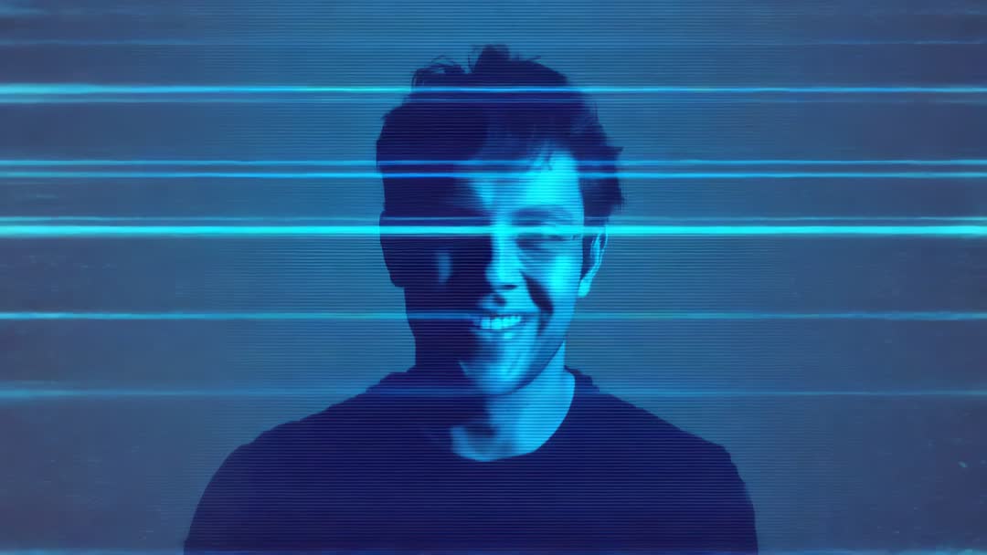 AI Generated Image. Video clip showing smiling man standing in front of neutral backdrop while cyan scanlines and horizontal motion lines sweep across frame, creating futuristic glitch and retro-VHS texture. Offering strong visual for technology and digital themes, suiting projects about AI, facial recognition, cyber security, data scanning, or virtual identity. Serving as dynamic hero for website headers, social media banners, YouTube thumbnails, online ads, and app intros, while providing clean negative space for text and branding. Working well for editorial content, corporate tech presentations, startup pitch decks, product launches, and music or film visuals, with loop-friendly motion and high-contrast blue tones for dramatic impact.