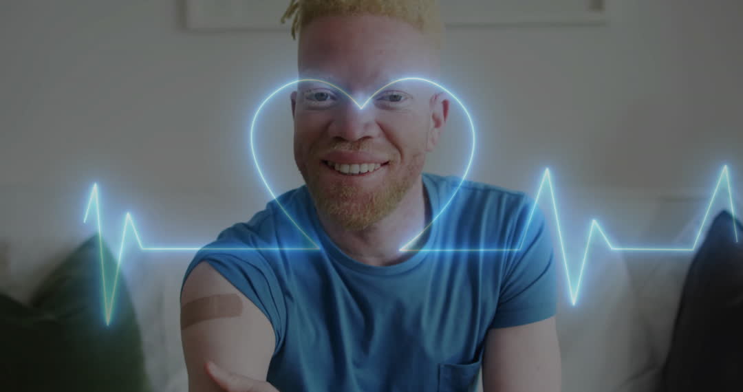 Man with animated heartbeat line symbolizing health, wellness, and technology, ideal for healthcare promotions, tech marketing, or wellness campaigns.