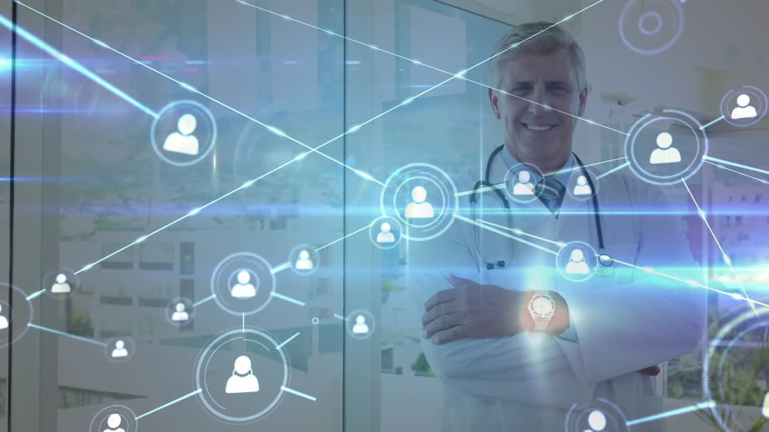 Smiling Senior Doctor with Network Connections in Healthcare Video