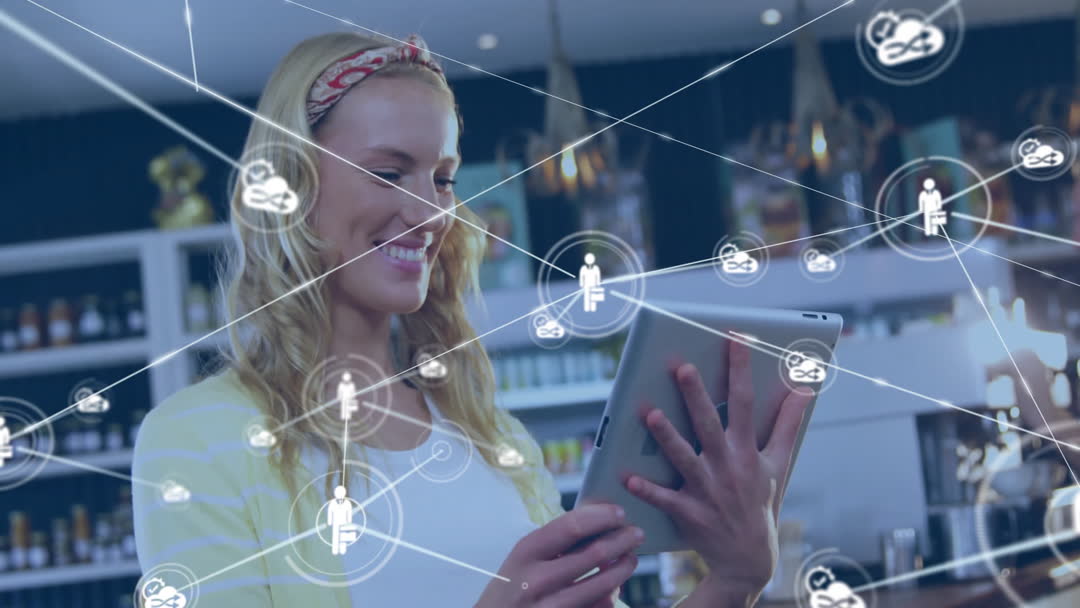 href="https://pikwizard.com/video/smiling-woman-in-cafe-using-digital-tablet-with-social-network-overlays/ef18ebd8dc24c2dea3f5a2a17181e36d/"